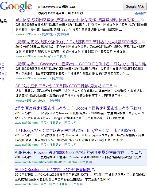 最近查詢成都思為網(wǎng)絡(luò)公司網(wǎng)站:http://jinshunsjj.com 在谷歌中收錄大量提升,2011.2.22日查詢?nèi)缦聢D,收錄數(shù)量達到(13,200條)