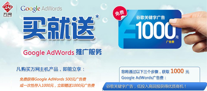 購萬網(wǎng)主機(jī)贈(zèng)送google廣告費(fèi)用--“Google AdWords買就送”活動(dòng)參與指南,詳情點(diǎn)擊:http://www.jinshunsjj.com/faq/zhuji/20110905122222.html